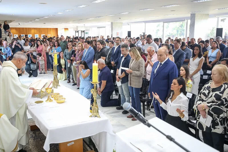 O governador Ibaneis Rocha participou de uma missa em ação de graças e da cerimônia de apresentação de seu retrato oficial na Galeria dos Governadores do Distrito Federal, no Palácio do Buriti. As solenidades marcaram o encerramento de sua trajetória à frente do Executivo local, reunindo autoridades, familiares, servidores e convidados em um momento de reconhecimento e despedida.