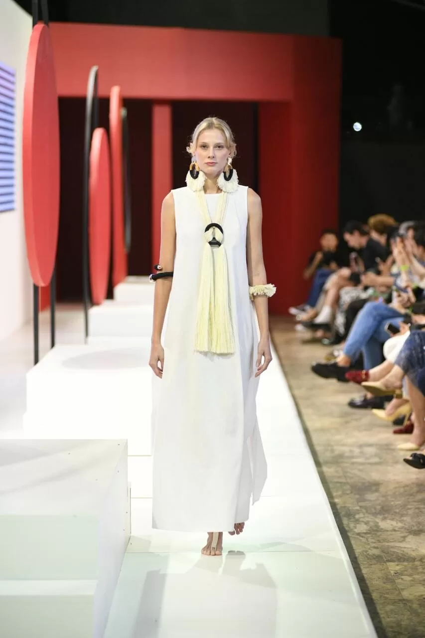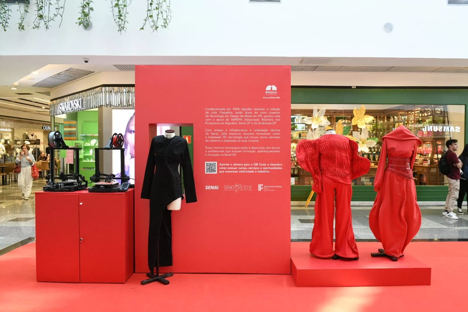 Redefinindo Curvas — Coleção da estilista Júlia Theóphilo, finalista do Desafio Sou de Algodão + Casa de Criadores. A mostra apresenta peças que unem moda e tecnologia, com impressão 3D em tempo real, em uma experiência inédita no Estilo Brasília.
