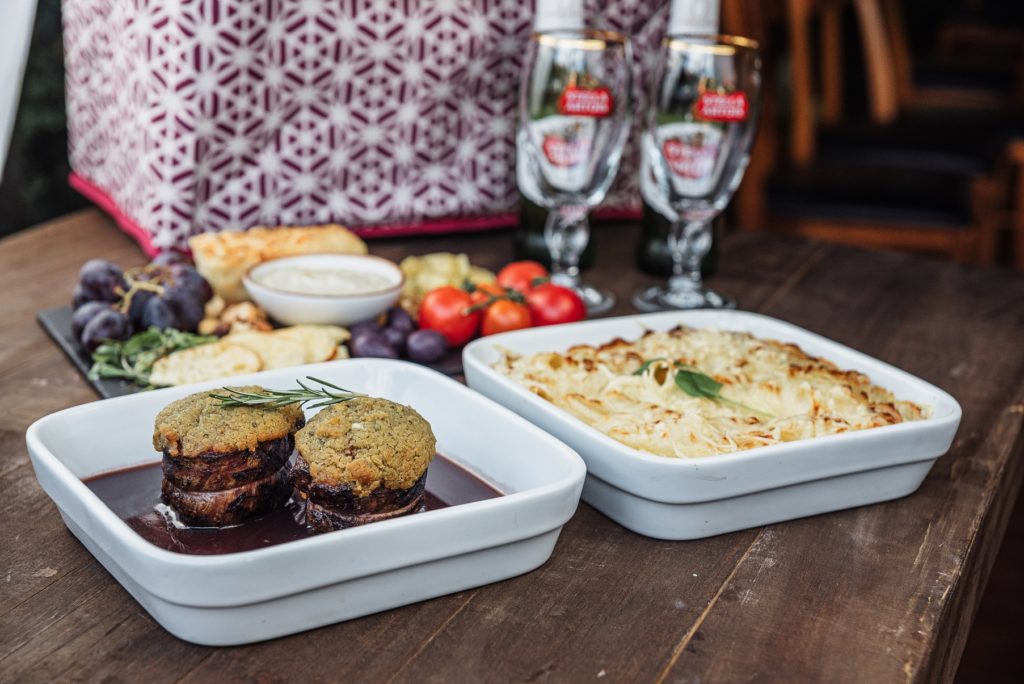Já para o prato principal são duas opções para escolha: Cassoulet (cozido de feijão branco com bacon, linguiça suína, paleta de cordeiro, cenoura e um toque de tomate e gratinado com farofa de ervas); ou o Boeuf Bourguignon (carne bovina marinada e cozida em vinho tinto, lardons de bacon, cebola, cenoura, cogumelo paris e croûtons. Acompanha purê de batata).
