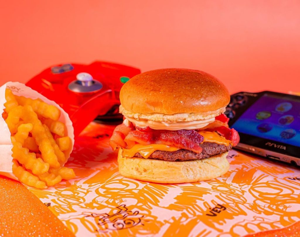 O Tá Doido Burguer preparou o combo casal (R$ 42), composto dois burguer Vey (generosas fatias de bacon crispy, 100g de blend de carne smash, queijo cheddar e maionese especial no pão brioche) e dois refrigerantes. A hamburgueria ainda entrega um recadinho em forma de correio elegante para o seu love.