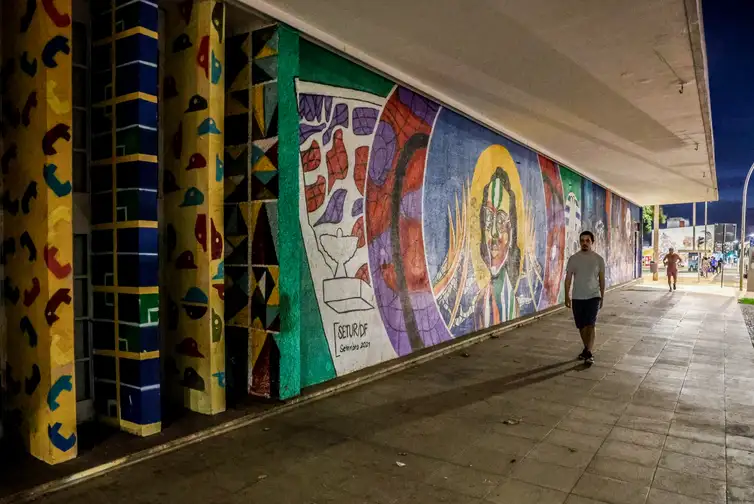 No ponto de ônibus, a estudante Rilei Silva, de 18 anos, espera o transporte para Samambaia e admira as obras. Ela lamenta que está desempregada, mas queria arrumar logo uma chance para alcançar o desejo de cursar fisioterapia. “Às vezes, espero o ônibus por 50 minutos. Vejo esses desenhos de [Roberto] Burle Marx (1909 – 1954), ou o [Oscar] Niemeyer (1907 – 1912). Queria saber mais sobre eles”.