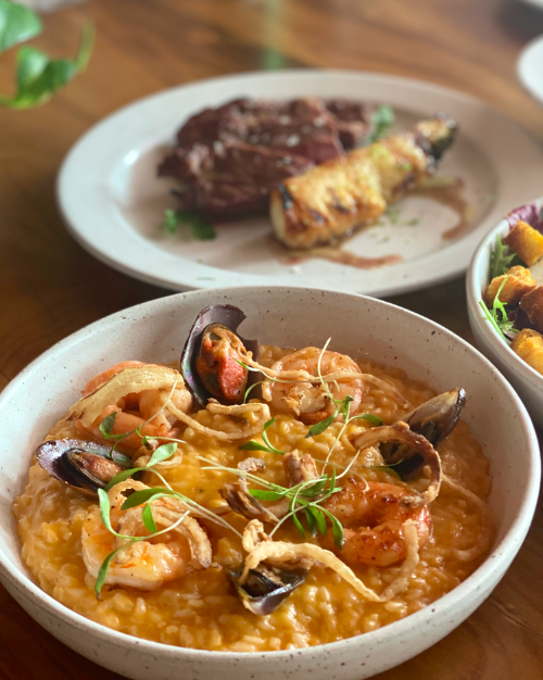 São três novos pratos que acabaram de ser incluídos. O menu principal conta com: o risoto de camarão com mexilhão (R$ 67,00), feito com mexilhões frescos, camarão salteado e finalizado com cebola crispy; lasanha de ragu de carne (R$ 66,00) com molho de tomate, bechamel, parmesão e mozzarela; e o crocante frango a parmeggiana (R$ 67,00), coberto com queijo derretido e molho de tomate com manjericão.