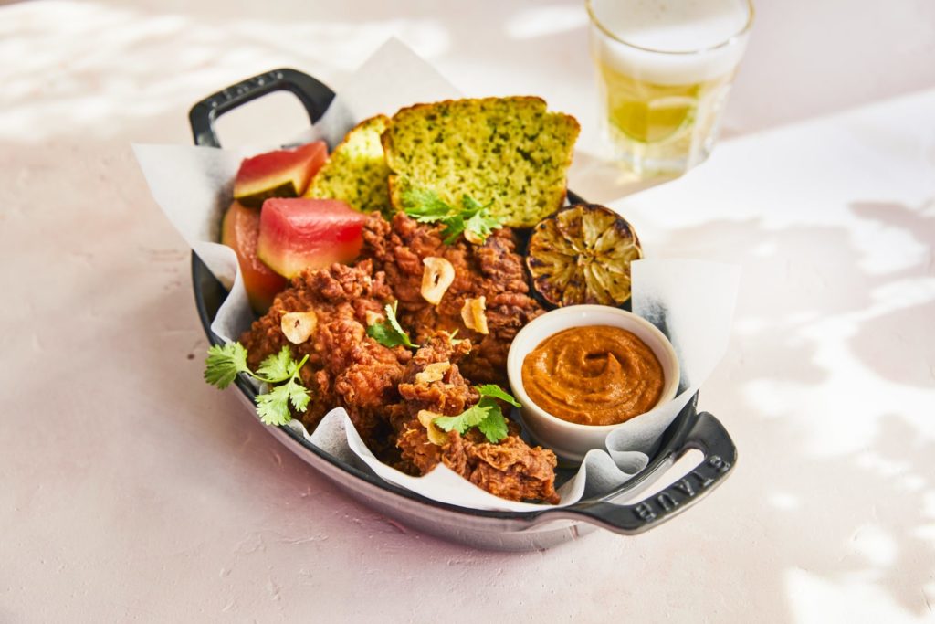 Na parte das Entradas, os destaques ficam para o Pão de Polenta – cebolinhas, coentro e manteiga batida (R$ 14); Tataki de Carne de Gergelim – filé selado no Josper com molho oriental, cebolinha e wasabi (R$ 29) e a Belíssima Burrata – tomates sazonais, melancia, pimenta fresca, cebola roxa, limão e hortelã (R$ 65). E, nos Principais: o Salmão Ponzu – vagem francesa no perfume de alho, pepino grelhado, wasabi, cebolinhas e gergelim (R$ 65), Couve-Flor Assada com Harissa – purê de couve-flor cremoso, avelã com especiarias, gergelim dukkah e sementes de romã (R$ 35) e o Burger de Frango Grelhado – pão tostado, sobrecoxa de frango glaceada com mostarda cremosa, abacaxi caramelizado, salsa e coentro fresco (R$ 34).