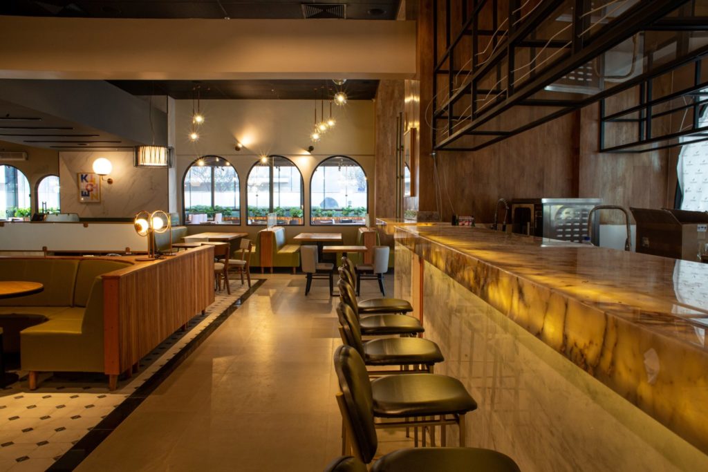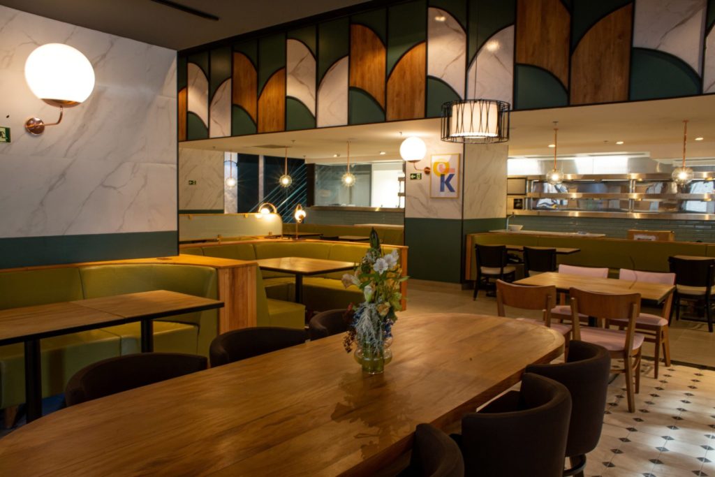 Logo na entrada, o Jamie Oliver Kitchen conta com um café que tem espaço exclusivo e funciona independente do restaurante. Ambientes descontraídos e modernos estão distribuídos nos 620 metros quadrados do local e entre os principais destaques estão uma acolhedora cozinha aberta, assentos flexíveis com mesas maiores para reunir grupos e compartilhar menus e uma varanda para relaxar, seja no meio do dia ou nos bons momentos de happy hour.