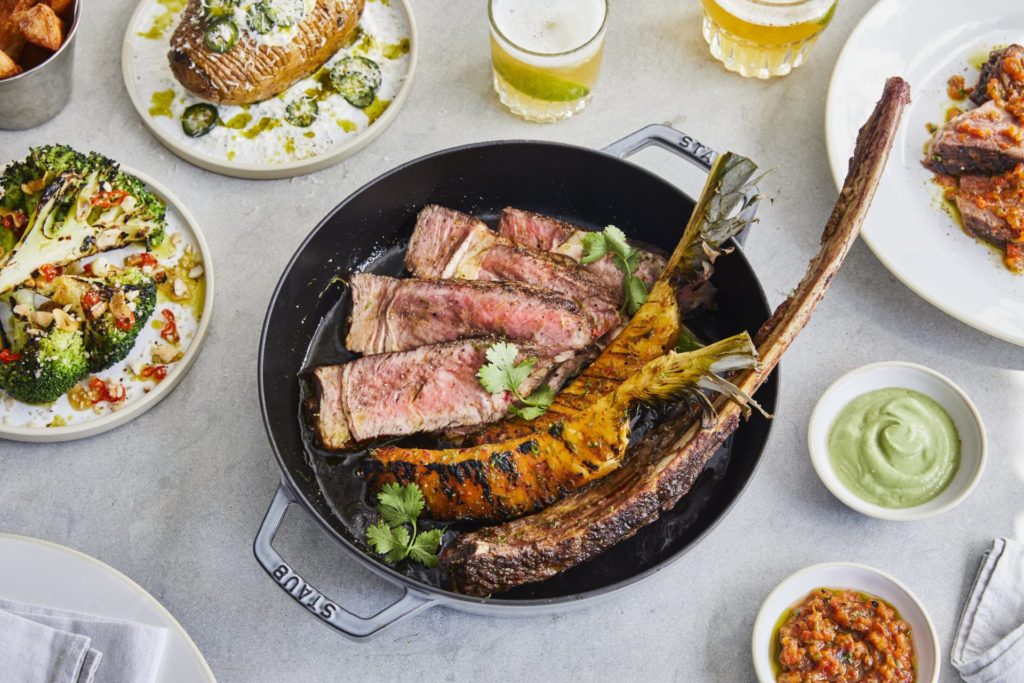Na sessão Grelhados – que são os carros-chefes da casa –, a grande evidência fica por conta dos pratos feitos no forno Josper, à base de carvão, como o Tomahawk – corte de 1kg de carne com osso, acompanhado por trio de molhos (R$ 195) e o Ancho – corte de 280g (R$ 79). Todos os cortes são grelhados ao gosto do cliente e servidos com abacaxi coberto com limão, além da escolha de acompanhamentos e molhos (barbecue, piri-piri, mojo verde, iogurte de jalapenho ou salsa de tomate).