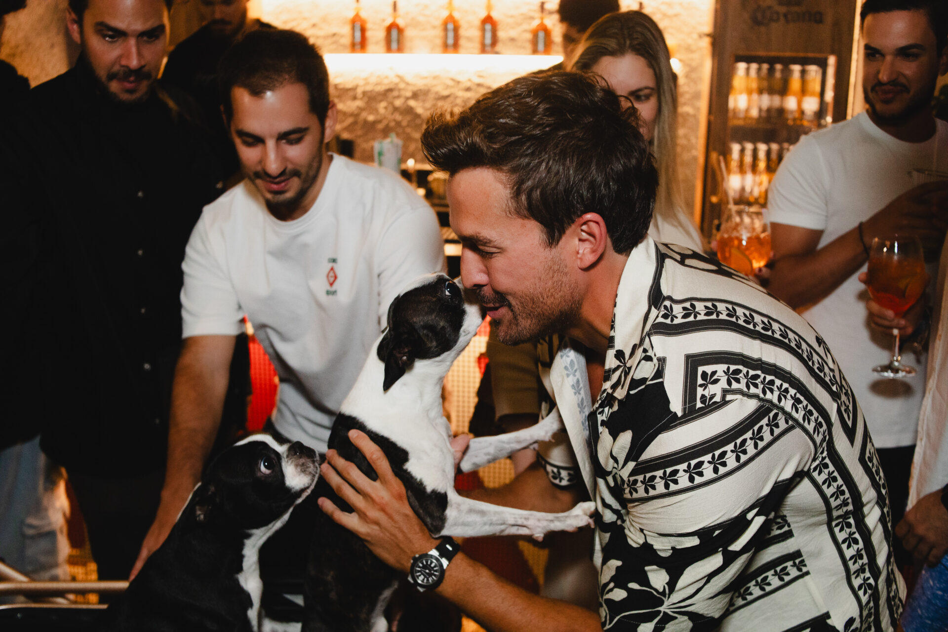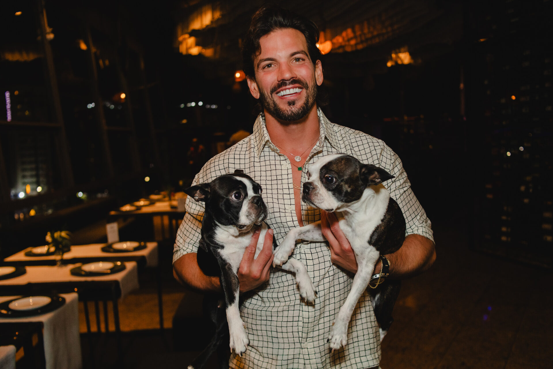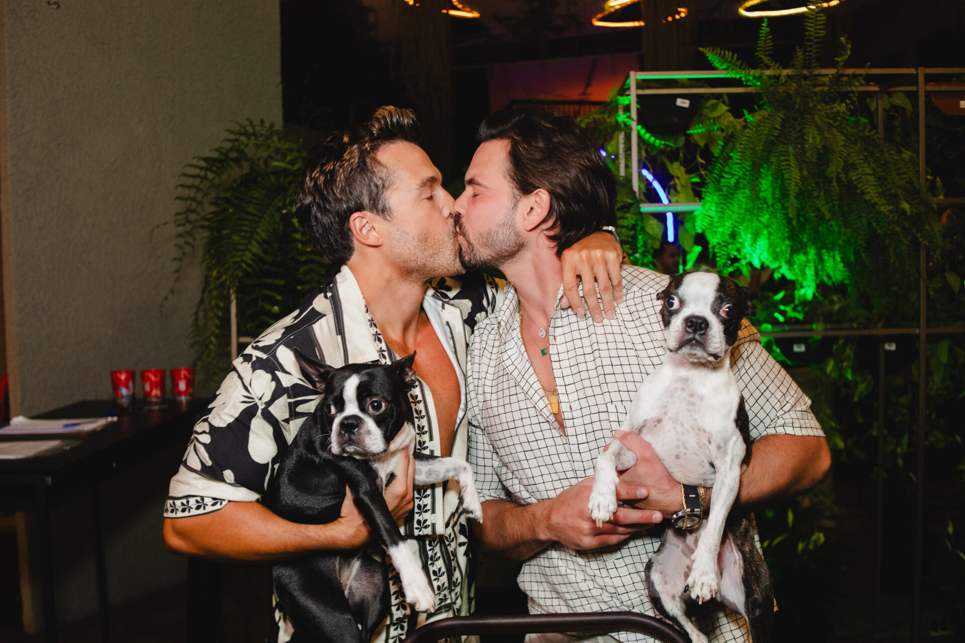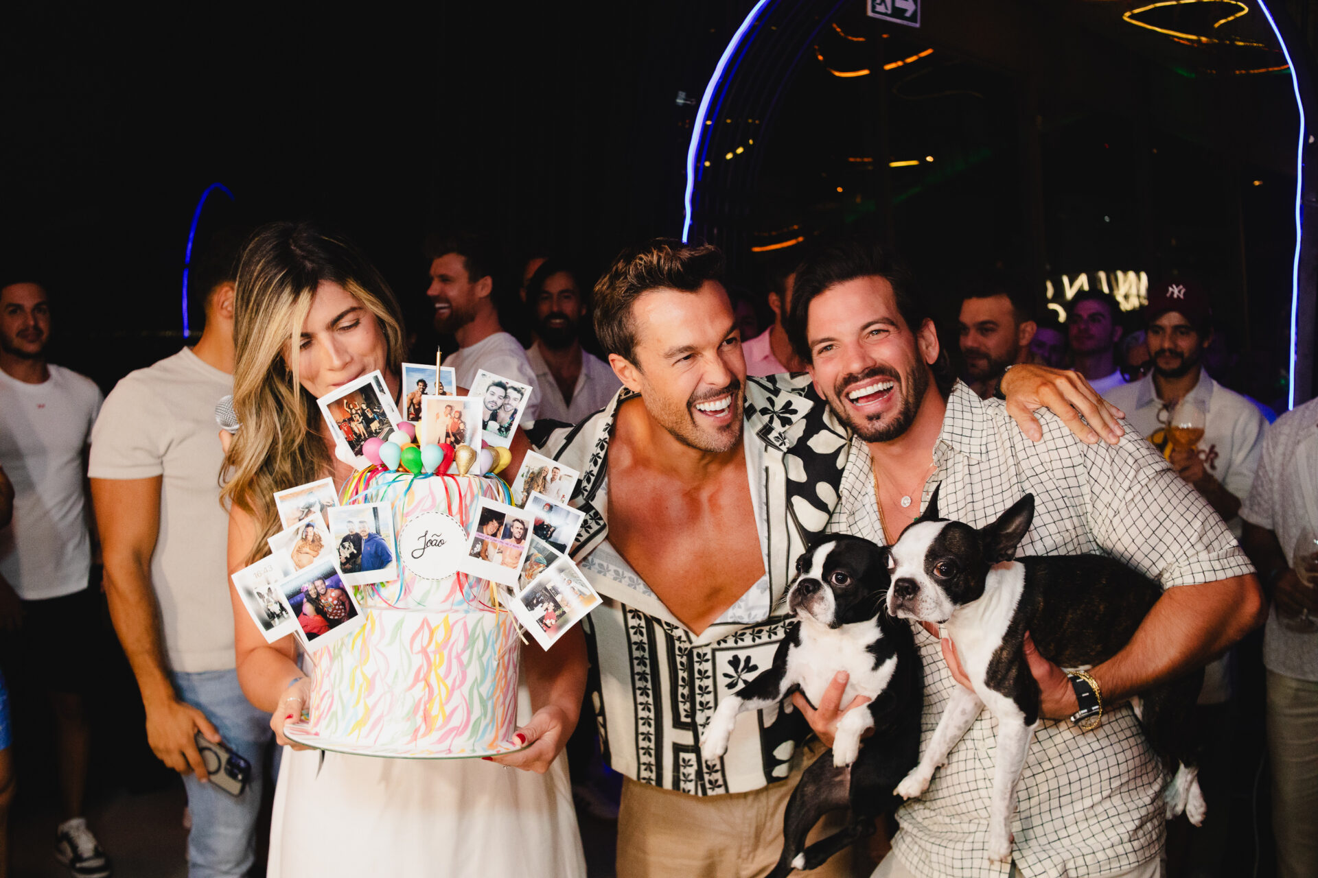 Um dos momentos mais marcantes da noite aconteceu na hora dos parabéns, quando os dois pets do aniversariante fizeram uma aparição surpresa, levados até o local pelo namorado, Caio Gazel, arrancando sorrisos e aplausos dos convidados.