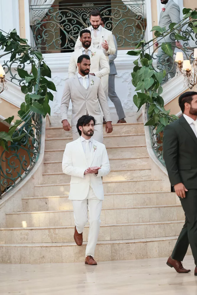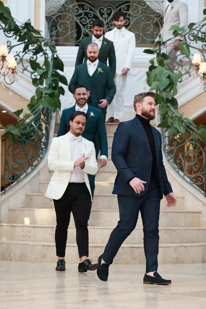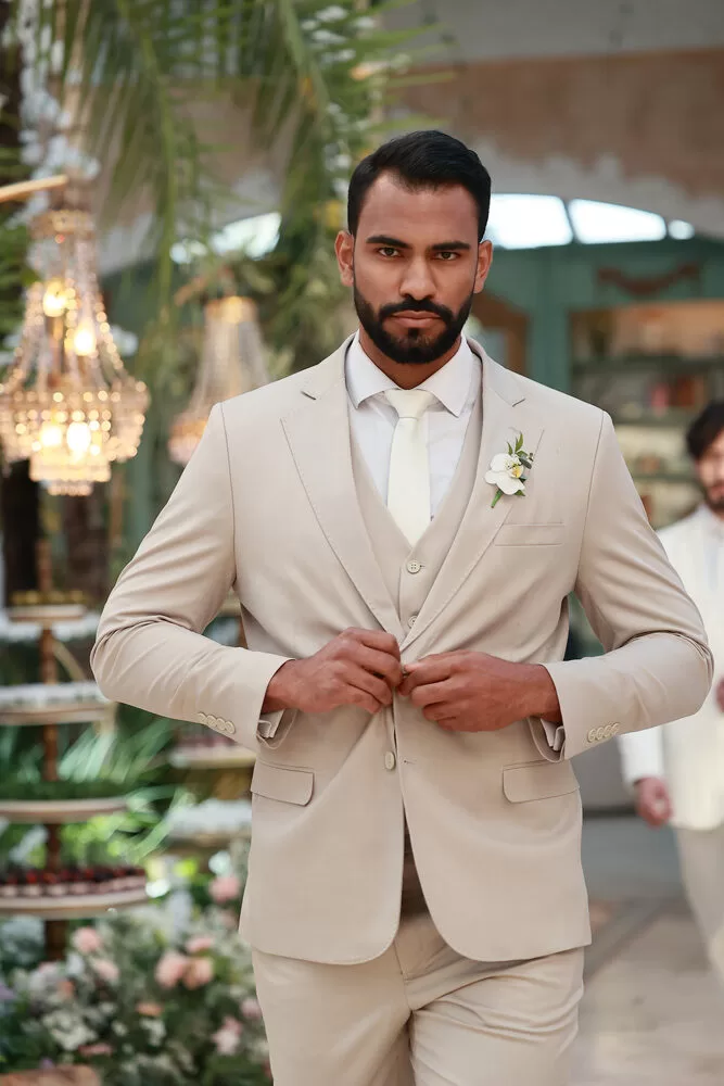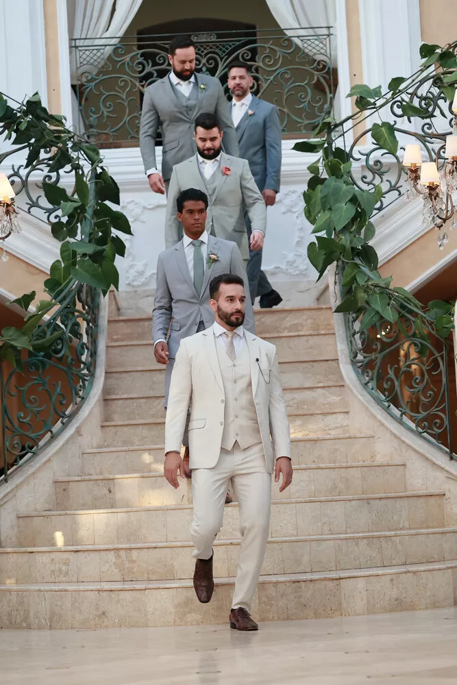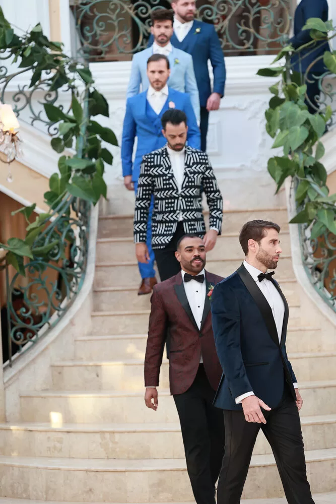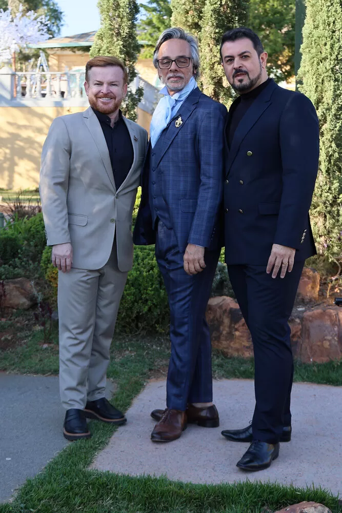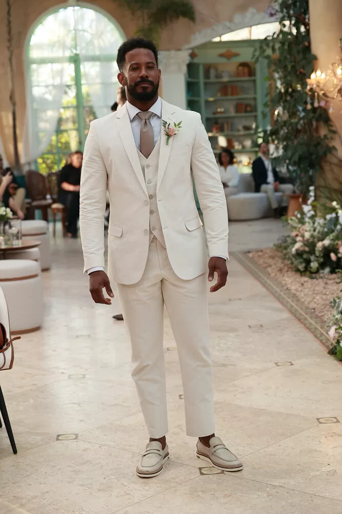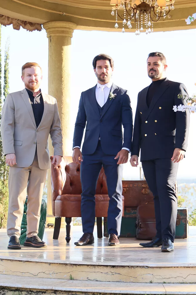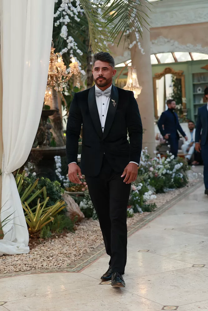 A coleção, que transita entre o clássico e o contemporâneo, é uma verdadeira celebração da alfaiataria como forma de expressão. Tons claros — como off-white, bege e suaves variações de verde — ganharam destaque nas passarelas, ao lado do tradicional azul-marinho, que permanece como símbolo de sofisticação. As peças foram desenhadas para vestir o noivo em todos os momentos: dos mais formais, com smokings estilizados e versões em veludo, aos mais ousados, com tecidos adamascados, jeans trabalhado e bordados exclusivos que imprimem personalidade e autenticidade.