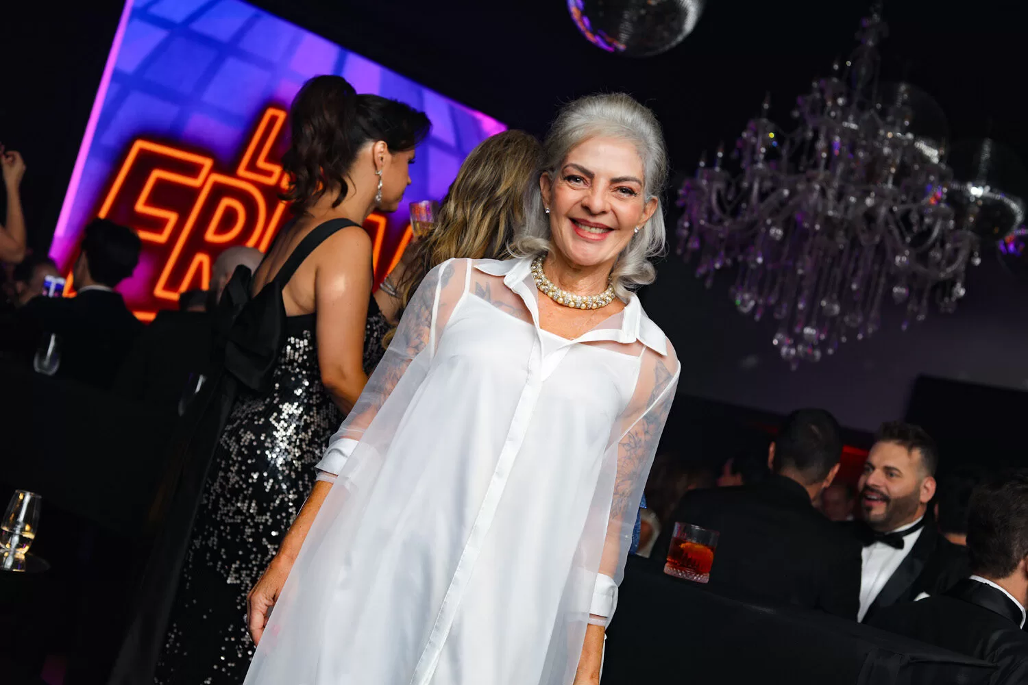 Batizado de Le Freak Club, o evento foi inspirado no lendário Gallery, icônica boate paulistana inaugurada em 1979 que marcou época pelo luxo e pela música pulsante. A cenografia, o som e os detalhes remetiam a esse espírito — com uma pista de dança dourada de 60 m², ladeada por camarotes, onde brilhou a energia contagiante da noite.