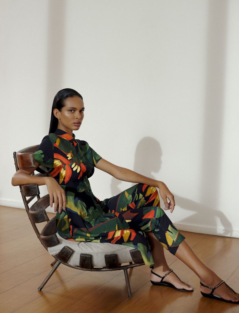 A coleção apresenta estampas clássicas, como o geométrico e o animal print, revisitados em roupas e beachwear. A botânica, sempre presente nas coleções da marca, surge revisitada com novas cores e propostas. Os tons terrosos aparecem como protagonistas em peças com shapes atemporais e tecidos primorosos, como a seda e o linho. Em contraponto, a label também traz o verde vibrante lima como aposta para a estação.