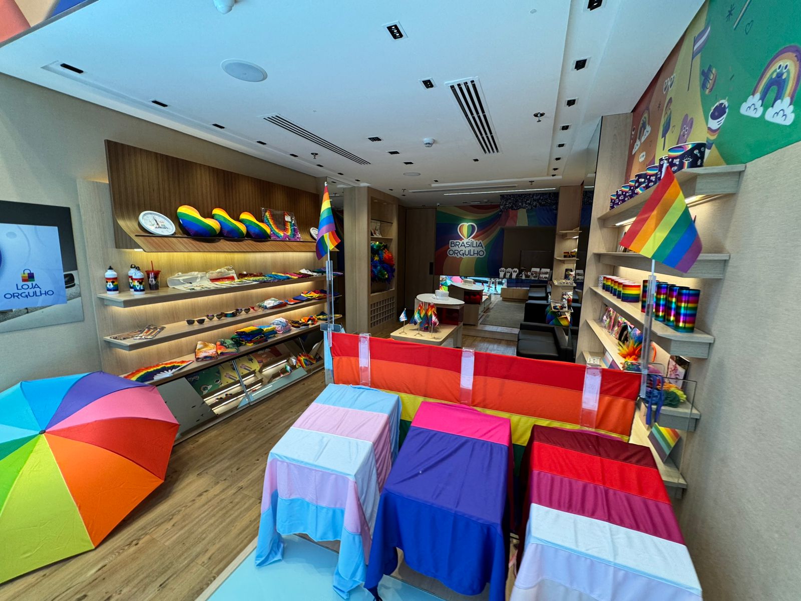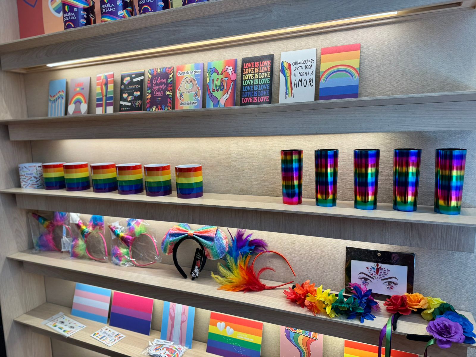 Mais do que uma loja temporária, a Loja Orgulho é um espaço de resistência, representatividade e solidariedade. Instalada no Boulevard Shopping Brasília, no piso 2, a loja oferece cerca de 70 produtos entre artigos de decoração, papelaria e acessórios. Entre os itens estão óculos de LED arco-íris, tiaras, leques, travesseiros, canecas e braceletes — ideais para quem quer marcar presença na parada com estilo, cor e identidade.