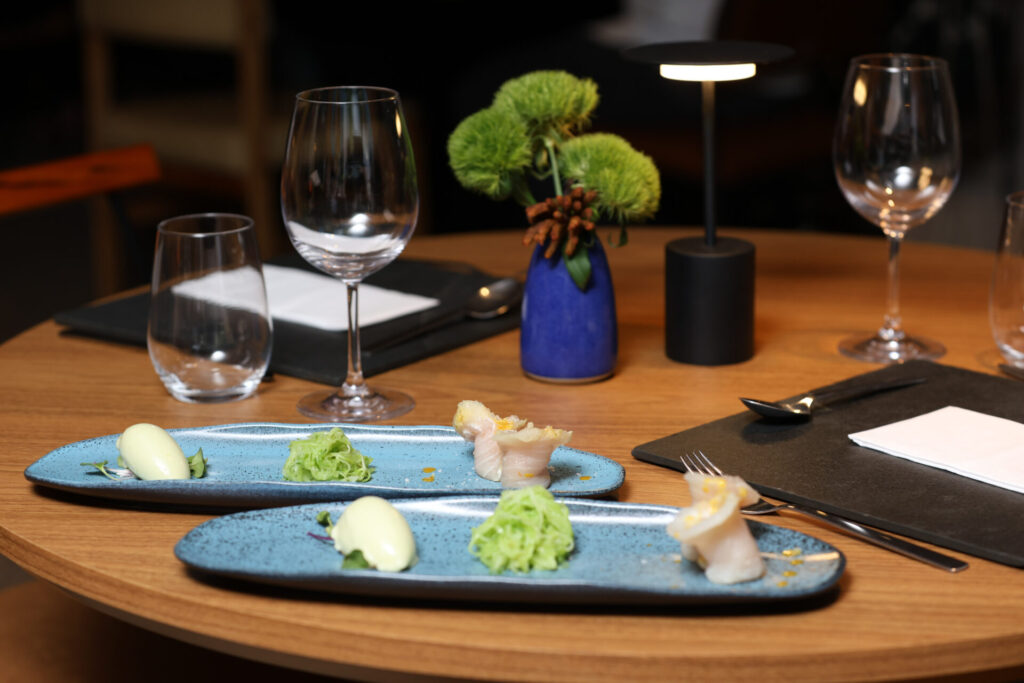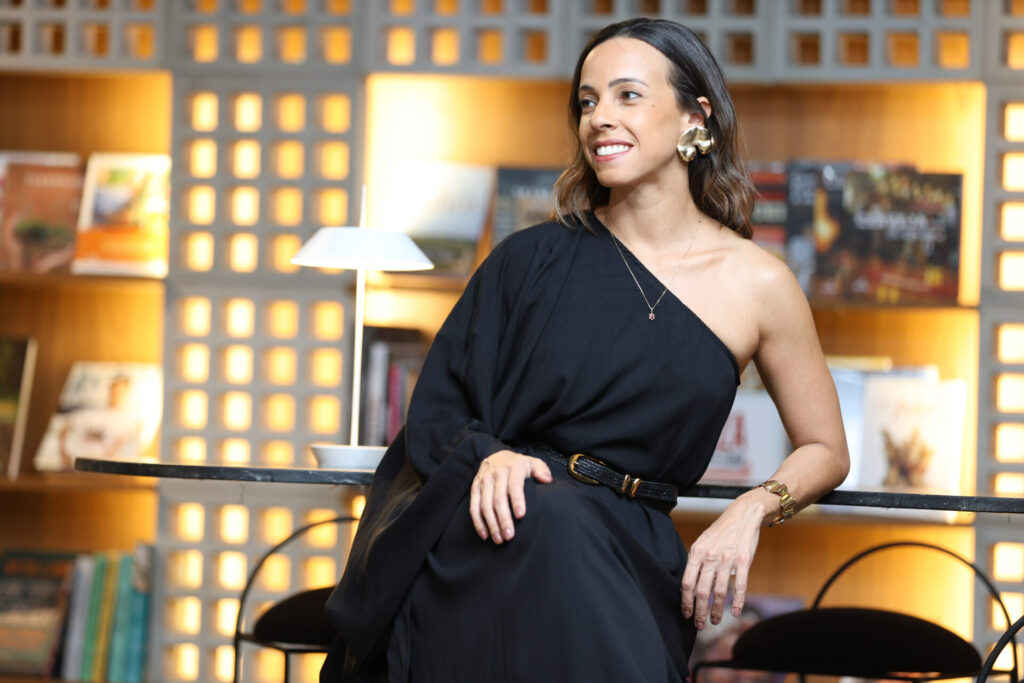O ambiente também conta com cobogós e pilotis, elementos arquitetônicos característicos da capital, e foi pensado para refletir a harmonia entre forma e função, transformando a refeição em uma vivência estética e imersiva. Luciana escolheu designers brasilienses, artistas locais e marcas da capital para compor o espaço.