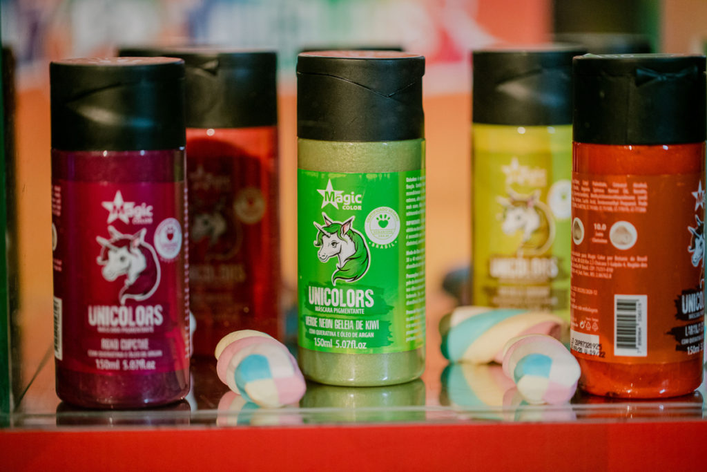 Além da embalagem nova, cores exclusivas, textura diferente e tamanho maior, as máscaras pigmentantes vão chegar ao mercado encorajando todo mundo a se jogar nas cores e dar poder a personalidade por meio do cabelo colorido. A textura em creme possibilita maior flexibilidade de customização, podendo misturar em máscara branca para atingir tons mais claros ou misturados entre si. Se antes as cores fantasias eram utilizadas apenas por jovens, hoje é tendência e conquistou de fashionistas a pessoas clássicas e maduras. Afinal, o importante é ter o cabelo da cor que quiser, de acordo com quem se é. Cada produto tem o nome de um delicioso doce e além de um cheirinho maravilhoso, os Unicolors continuam veganos e com a mesma garantia de sempre.