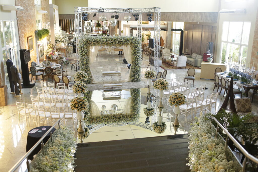 Finamente decorado com elementos de alta arquitetura, conta com pé direito de 7 metros, piso em granito, tratamento térmico-acústico de última geração, suntuosa escadaria e jardins laterais. Projetado para atender a eventos sociais com até 500 convidados sentados e eventos corporativos com até 1500 convidados.