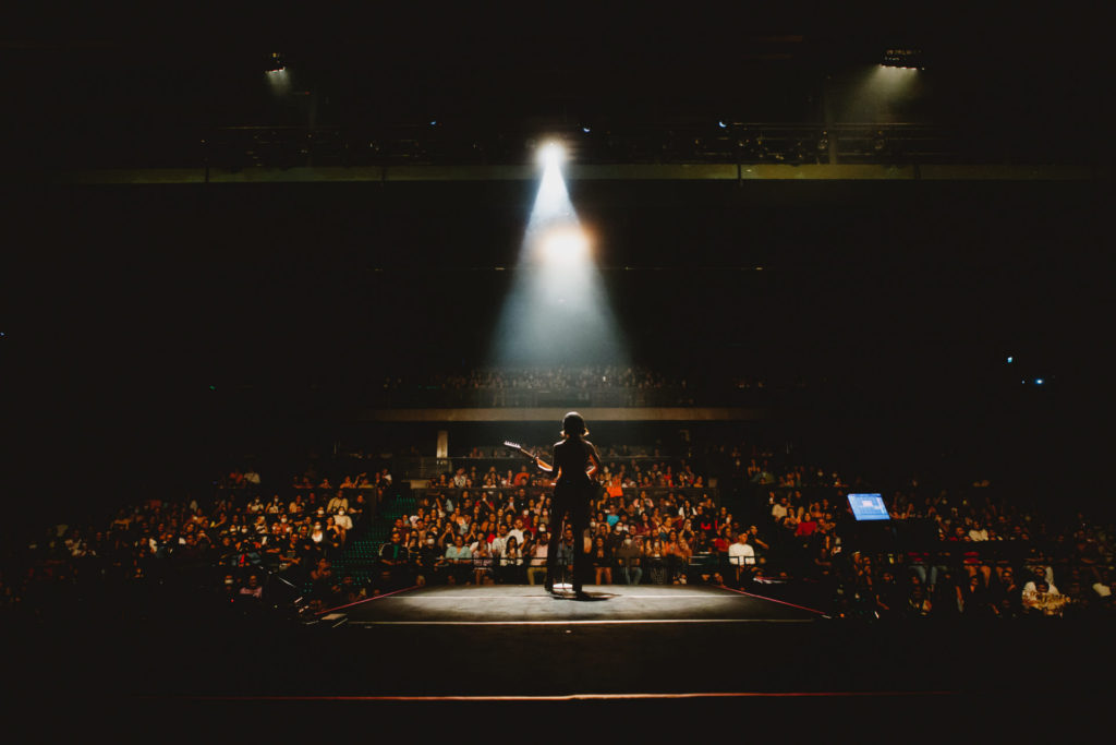 Em grande parte do show, Manu permanece acompanhada de sua guitarra onde interpreta algumas canções como “Vienna”, de Billy Joel.