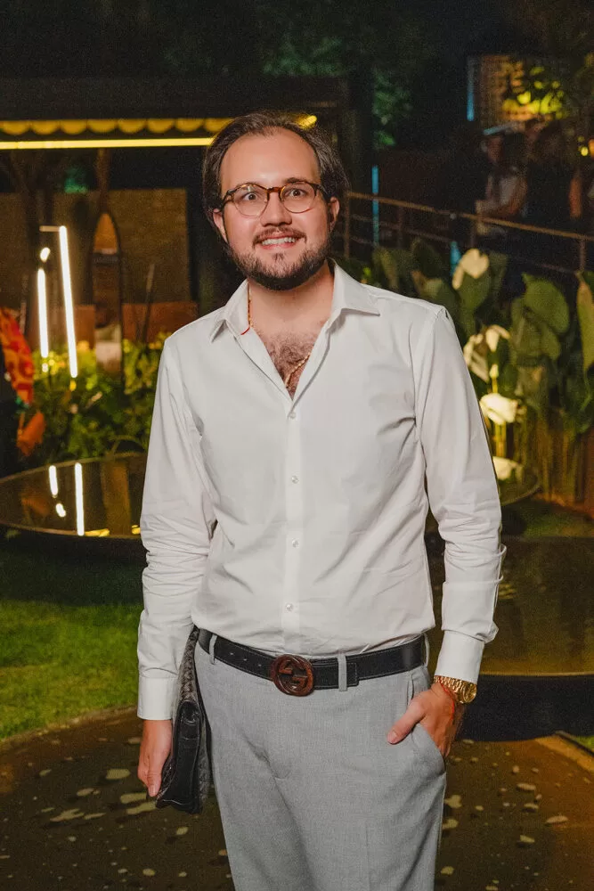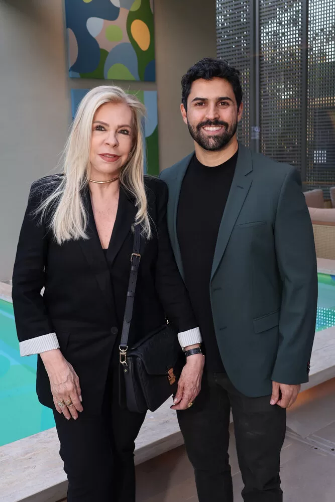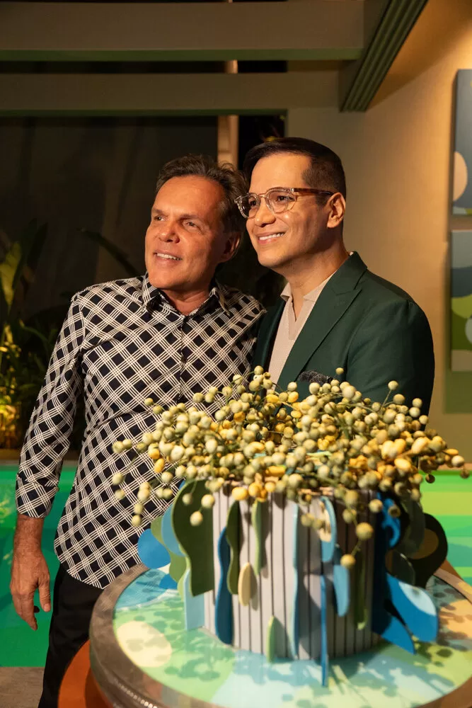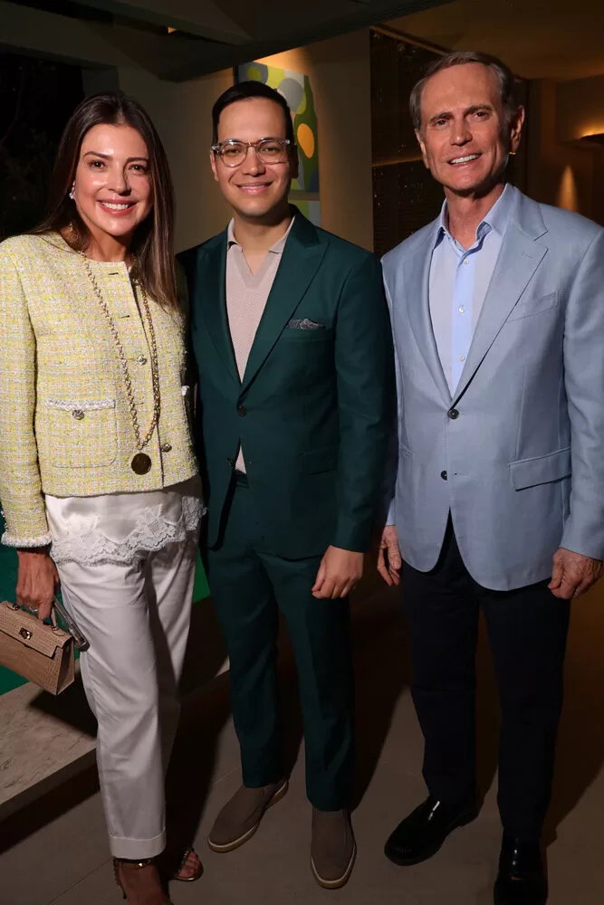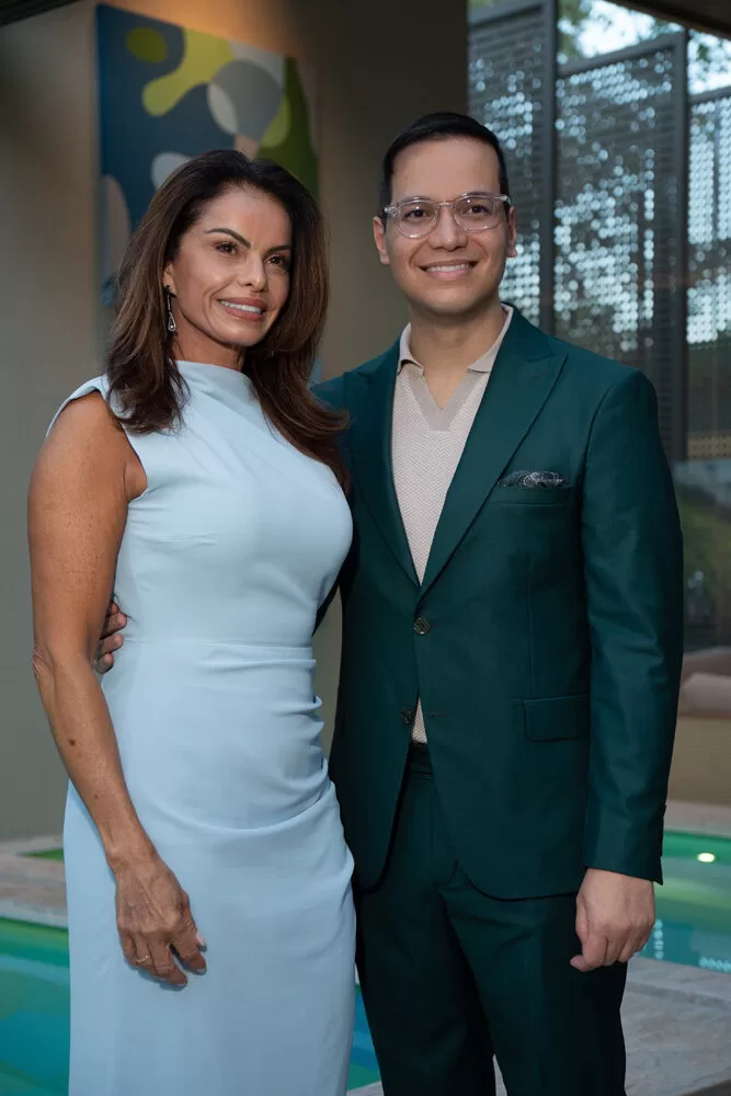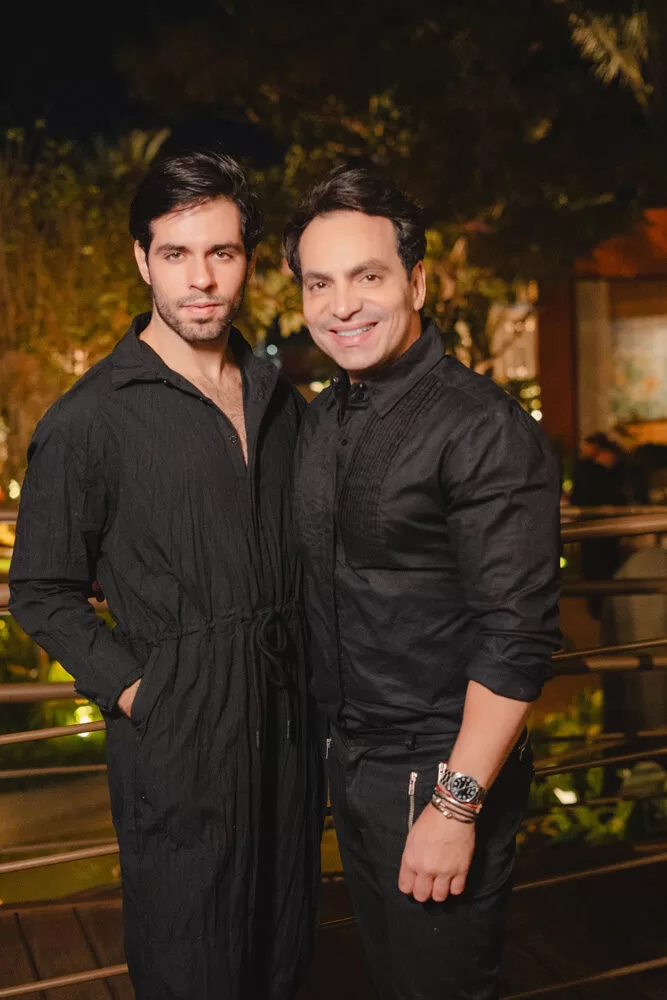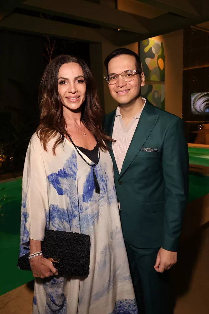 Para a recepção, Marcelo escolheu como cenário o ambiente assinado pelos arquitetos George Zardo e Julia Zardo, que se transformou em palco de encontros e registros memoráveis. Impecável, o colunista surgiu em uma alfaiataria verde de Leo Carvalho Sartoria, destacando sua presença com sofisticação.