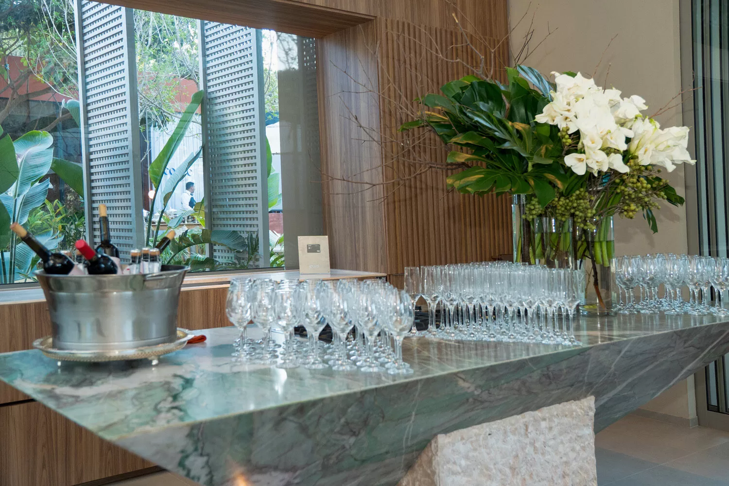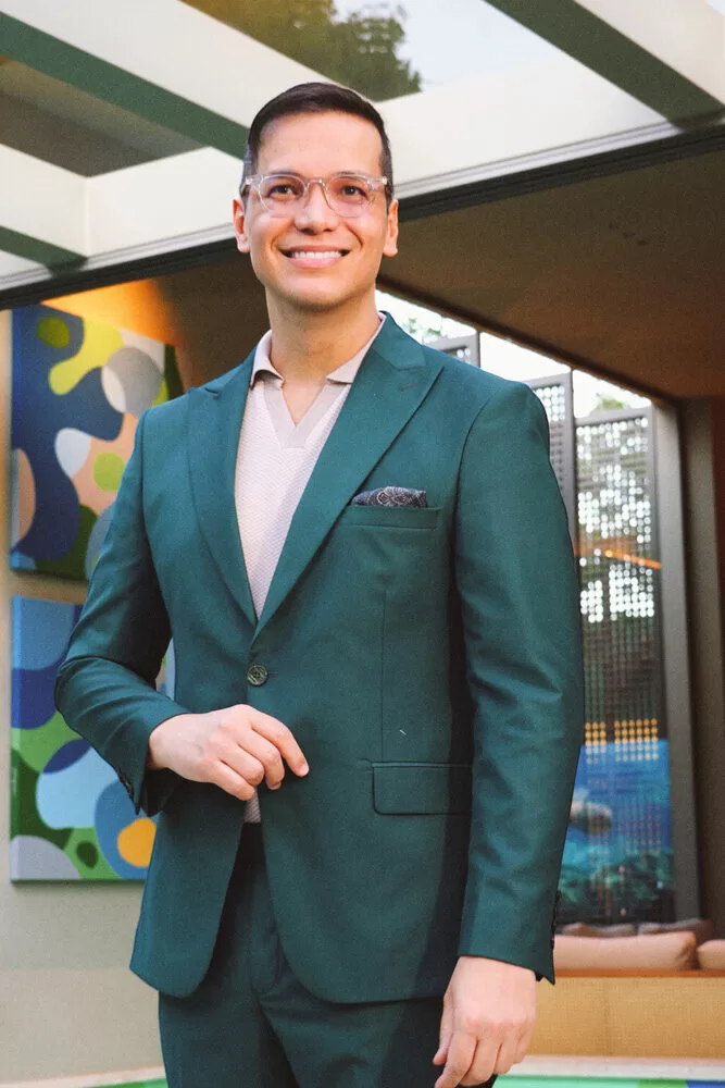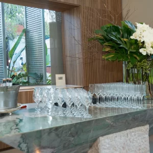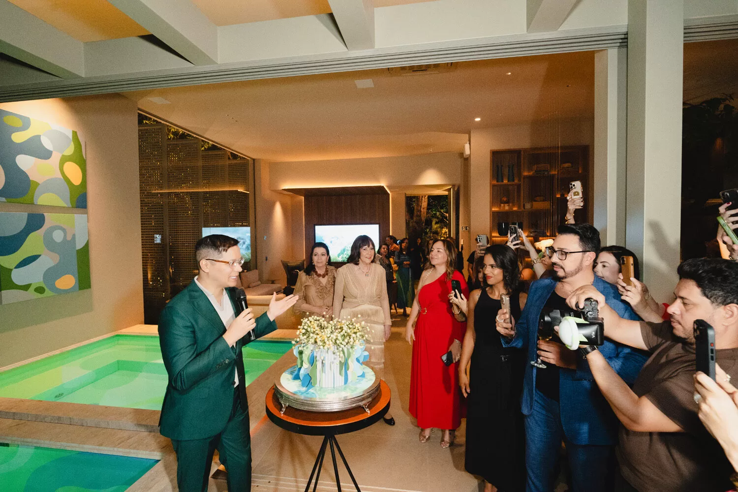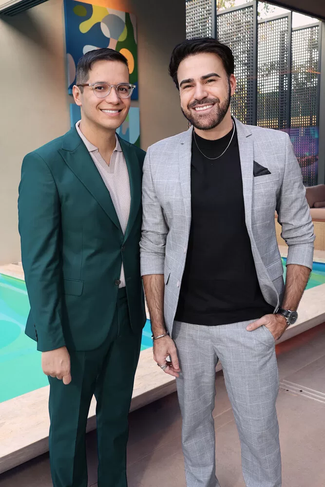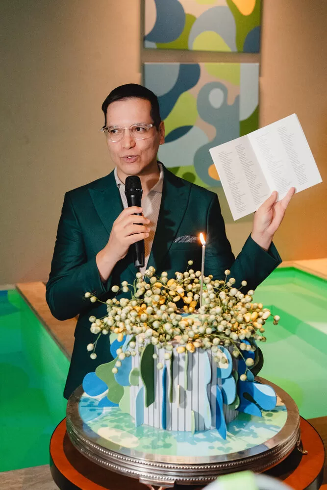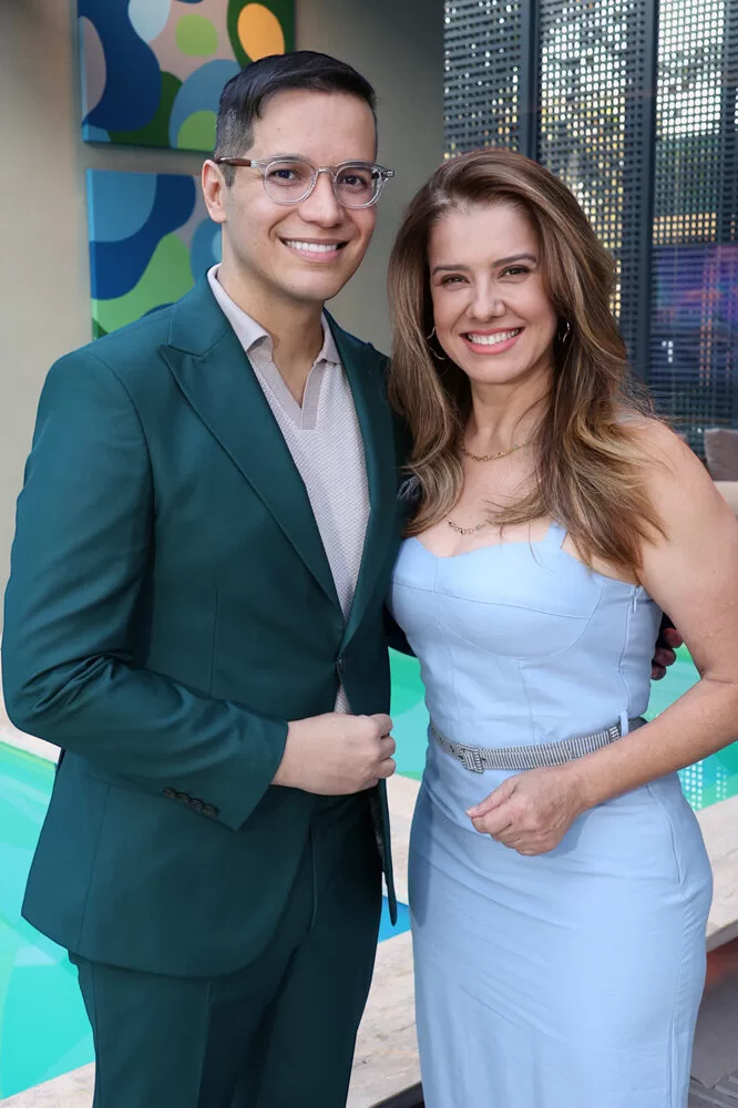Para a recepção, Marcelo escolheu como cenário o ambiente assinado pelos arquitetos George Zardo e Julia Zardo, que se transformou em palco de encontros e registros memoráveis. Impecável, o colunista surgiu em uma alfaiataria verde de Leo Carvalho Sartoria, destacando sua presença com sofisticação.