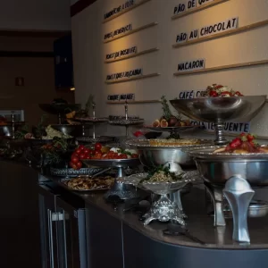 A experiência gastronômica foi cuidadosamente conduzida pelo Federal Buffet, que apresentou um menu com inspirações mediterrâneas, risotos cremosos, tortas e uma seleção de frios refinados. Para brindar a ocasião, foi servido o espumante italiano Vulcanici Brut, realçando o clima festivo da noite.