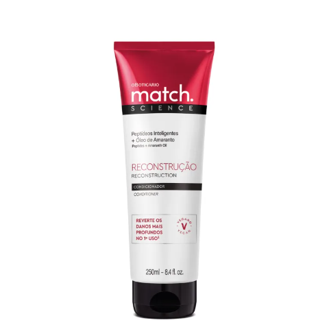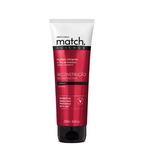 Os produtos de Match Science Reconstrução contam com dois principais ativos responsáveis pela reestruturação dos fios; são eles o óleo de amaranto, potente na hidratação e nutrição, e os peptídeos inteligentes, provenientes da proteína do trigo e aprimorados em laboratório para agir diretamente na área danificada. Essa combinação estratégica contribui para que a linha tenha os resultados esperados, proporcionando tratamento intensivo nas áreas que precisam dessa intervenção.