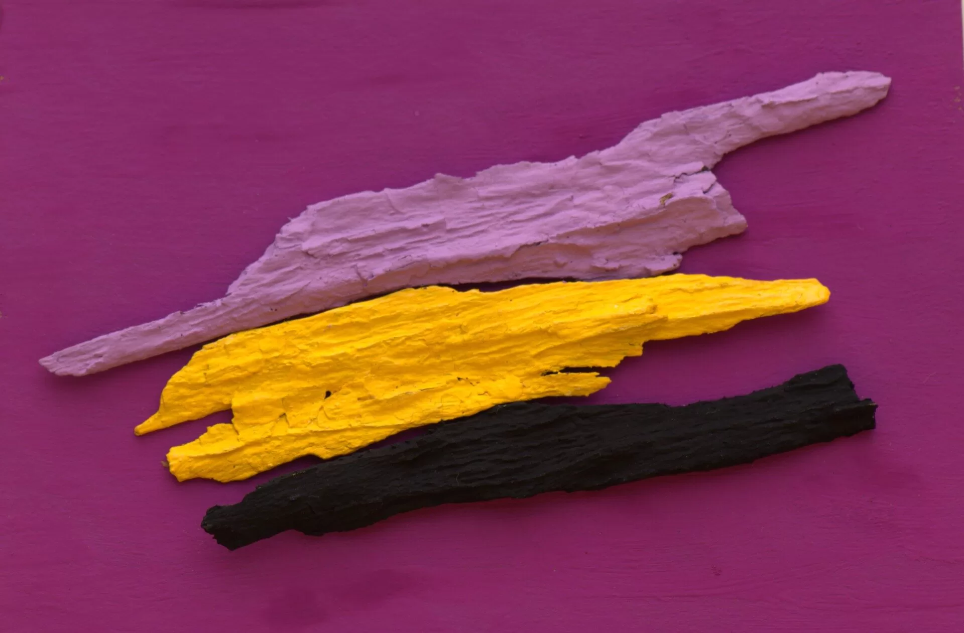 Um dos destaques da mostra está no conjunto de fotografias de paredes descascadas, onde o próprio desgaste revela camadas do tempo. “É como se o tempo estivesse pintando a parede”, define Rolo. A reflexão sobre a impermanência também aparece nas colagens que incorporam elementos naturais, como cascas de árvores, deslocadas de seu contexto original para ganhar novos significados no campo artístico.