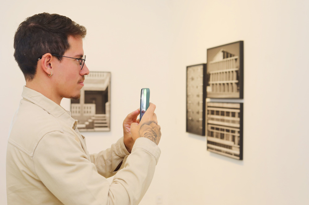 “A ternura do concreto” traz um olhar único sobre a arquitetura brutalista, revelando 30 obras, sendo a maioria inéditas, fruto de sua pesquisa no Brasil e na Índia. Guiados pela galerista Karla Osório, arquitetos e designers de interiores conheceram a produção do fotógrafo e seu olhar peculiar para a arquitetura. “Emmanuel aborda a arquitetura não como um fotógrafo de arquitetura. A expografia da mostra também procurou uma linguagem diferente, evitando a linearidade e ressaltando as aproximações das imagens pela luz e pela forma”, disse a galerista.