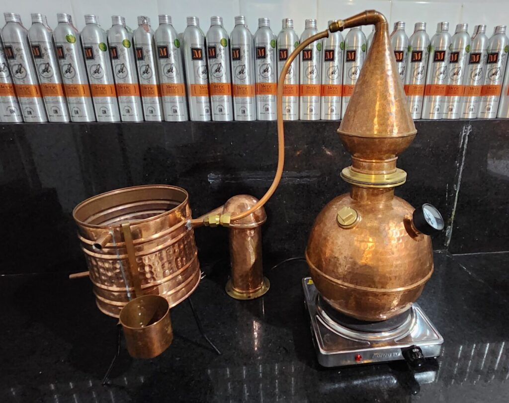 Alambique – equipamento usado na destilação de várias bebidas alcoólicas no laboratório do Méric Gin na Asa Norte