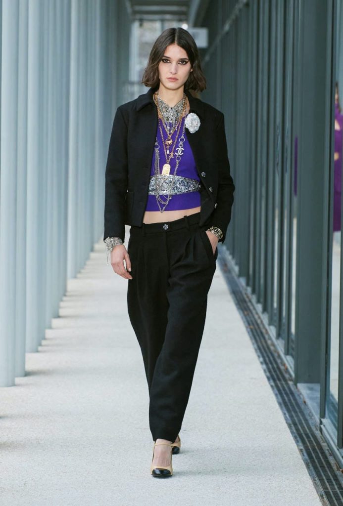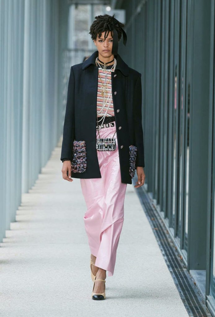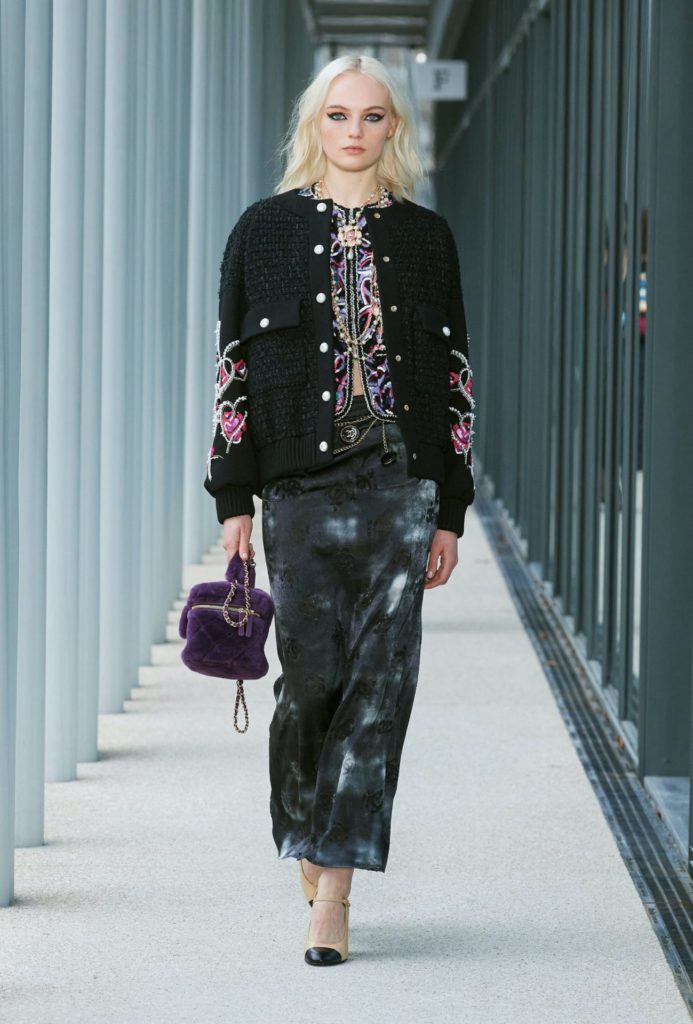 Na visão de Virginie Viard, linhas gráficas são atenuadas por modelagens orgânicas; há opacidade e transparência, volume e linha reta, suavidade e rigidez. Essa mistura pode ser vista em vários looks, mas principalmente no smoking finalizado por um esvoaçante quimono de seda. Masculino e feminino. Marcando e resumindo esse momento da marca francesa, a caixa de convite incluiu uma coleção de textos dos rappers Mc Claude e Abdal Malik e de escritores como Sarah Chiche, Anne Berest e Nina Bouraoui, contando sua visão do projeto Maison d’art no Le19M. Há, ainda, cartões postais com imagens pinçadas das animações criadas por Remembers Productions e que representam mulheres diferentes que tem, em comum, afinidade com o universo Chanel. Perfeito nos míninos detalhes.
