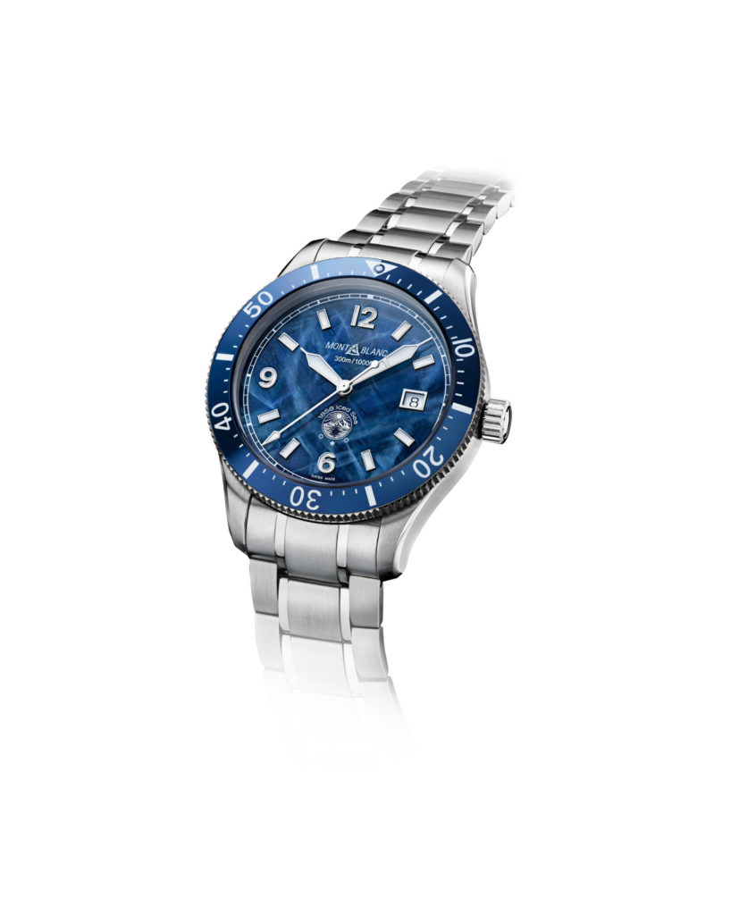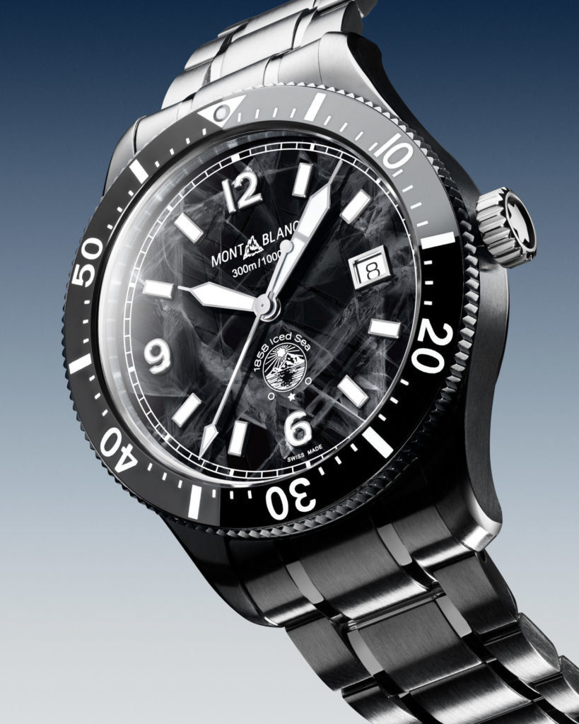 Quando pensou em criar um relógio esportivo de mergulho, a Montblanc não foi para as águas tropicais do mundo em busca de inspiração, mas subiu até os lagos glaciais do Maciço Montblanc. Subindo pelo Vale de Chamonix até o Mer de Glace (Mar de Gelo), os designers da Maison foram cativados pela textura do gelo glacial com sua rede entrelaçada de cristais que foram congelados no tempo por milênios.