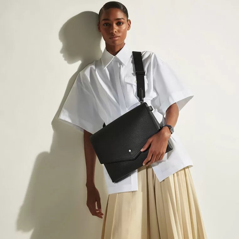 Entre as novidades está a mochila retangular Montblanc Companion, inspirada em uma pasta executiva clássica e projetada para ser usada tanto na vertical, como mochila, quanto na horizontal, como pasta. O modelo aparece em couro granulado na coleção Grain, nas cores preto e fauve, e em couro liso na coleção Sartorial, em preto e khaki. A linha também inclui a bolsa Montblanc On-Body Companion, disponível nas versões fauve e preta, além das Belt Crossbody Traditional em dois formatos, com destaque para as alças em forma de cinto com fivela clássica da marca.