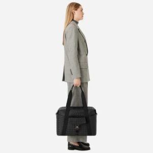 Outra opção sofisticada é a versão maior da icônica bolsa Montblanc 142. Ela reflete o design das icônicas canetas-tinteiro Meisterstück dos anos 1950 em uma mala com 55 cm de comprimento, para ser carregada na mão ou no ombro. Feita de couro preto com padrão Extreme 3.0 em relevo, é uma companheira confiável para viagens curtas e escapadas de fim de semana.