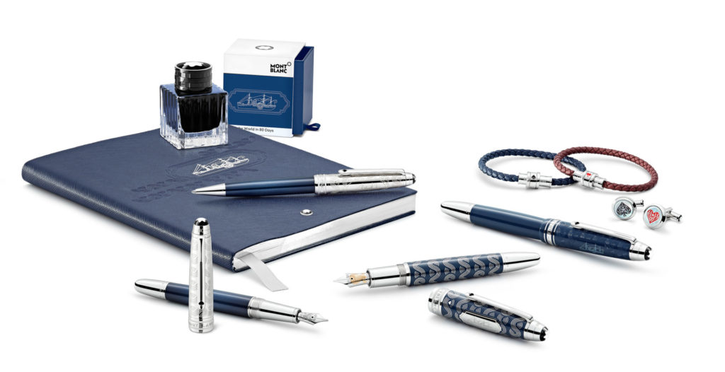 Os 18 dias necessários para completar a primeira etapa da viagem (dois dias mais rápido do que o planejado) podem ser encontrados gravados na parte de trás do topo superior, e os 80 dias atribuídos para toda a jornada na frente. As duas datas gravadas na pena artesanal de ouro maciço Au 750 marcam a data de início da viagem – 2 de outubro – e a data em que Fogg chegou a Bombaim, concluindo a primeira etapa – 20 de outubro. O balão de ar quente homenageia o espírito aventureiro de Júlio Verne e se refere a outra de suas obras, Cinco Semanas Num Balão, em que seus personagens usaram um balão de ar quente para procurar a nascente do Nilo. Símbolo de excelência em artesanato e design, o emblema Montblanc em resina coroa cada instrumento de escrita.