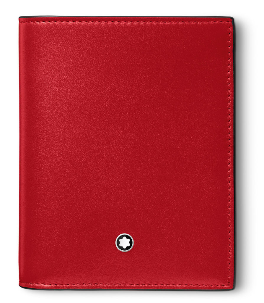 A carteira compacta 6cc Meisterstück, na cor coral, com seis compartimentos, foi desenvolvida em novo couro, de brilho intenso, com design geométrico, de essência funcional. Pode ser utilizada com uma alça de pescoço, que é vendida separadamente, ou colocando-a dentro do bolso.