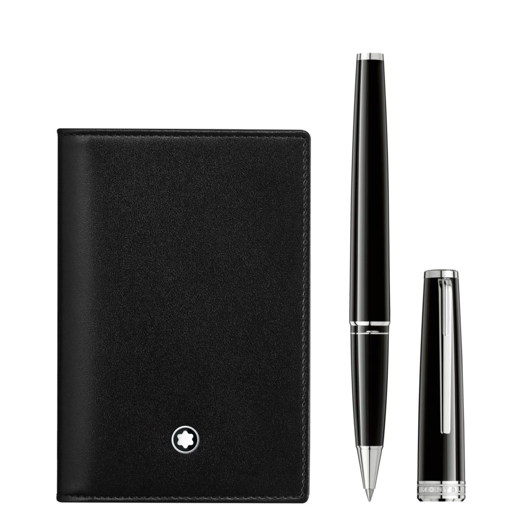Conjunto Rollerball PIX preta e porta-cartões Meisterstück preto