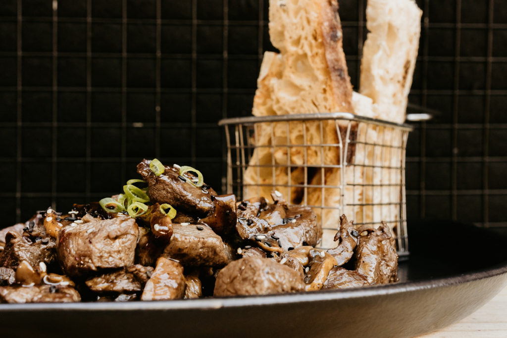 O mesmo corte de carne, preparado na chapa, faz par com fatias de cogumelos para compor o Carnemelos (R$ 48). A porção para compartilhar leva ainda molho de shoyu, gergelim, cebolinha picada, e é servida com fatias de pão.