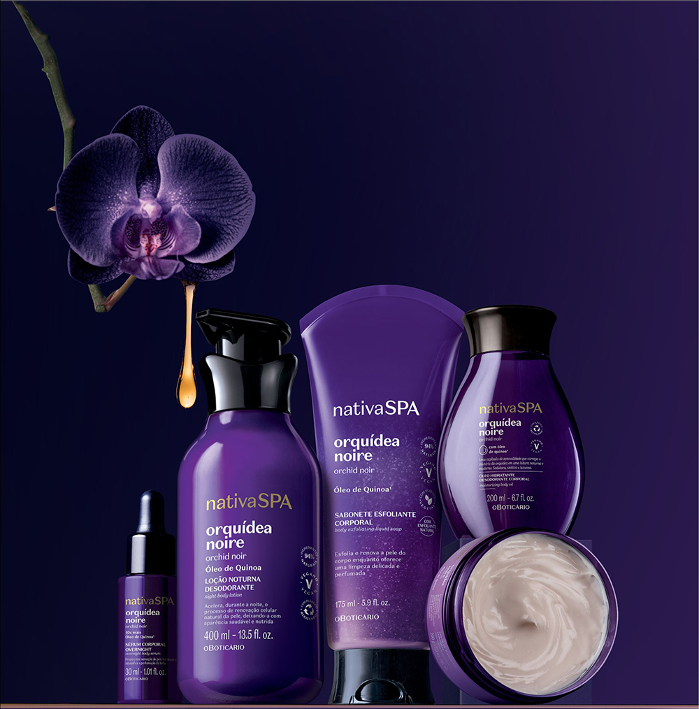 “Nativa SPA está sempre pensando em produtos inovadores com formulações únicas que trazem opções essenciais aos consumidores em diferentes fragrâncias, com ativos que extraem a máxima potência para o cuidado pessoal. Com Nativa SPA Orquídea Noire, reforçamos a excelência com a intensidade da alta concentração de quinoa e a perfumação especial e inédita da orquídea, flor marcante com fragrância característica de longa duração”, comenta Vanessa Machado, gerente de cuidados corporais do Grupo Boticário.