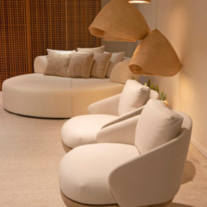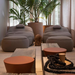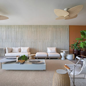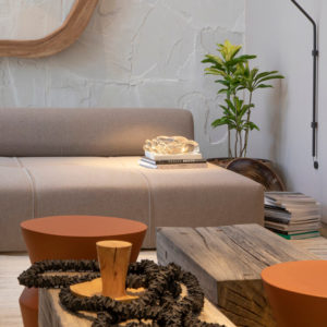 Atuando nos segmentos de interiores e arquitetura para residenciais e corporativos, o Studio Cada – fundado pelas sócias Catharine Cavalcante e Daniella Miranda – tem projetos desenvolvidos no Distrito Federal, Goiás e Minas Gerais. Para esta estreia na Mostra Artefacto Brasília, elas criaram um espaço de convivência que é uma mistura entre living e lounge de atmosfera intimista/acolhedora. Para compor o ambiente de 48 metros quadrados, elas optaram por mostrar a versatilidade dos móveis da Artefacto e como a seleção das peças outdoor – usadas em ambiente interno – pode ser elegante e arrojada. O desafio era trazer a natureza para um espaço sem iluminação e ventilação naturais. Pedras, galhadas de jabuticabeira e plantas secas, somadas à iluminação artificial por meio de lona tensionada e pontos focais, criaram o clima de aconchego que a dupla buscava atingir. Sobre a Artefacto, elas afirmam: “A marca preza pela qualidade, pelo design de seus produtos e pelo atendimento impecável. Assim como nós prezamos pela qualidade dos nossos projetos e atendimento exclusivo aos nossos clientes. Esse nosso casamento com a Artefacto não tem como dar errado”.
