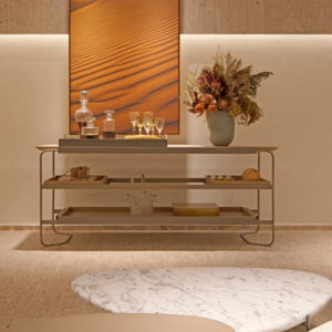 Desde sempre, Orestes e Maria Victória foram amantes das artes e da arquitetura, algo que faz parte do seu DNA, da sua vida e rotina. Viajar é o que mais inspira a dupla a criar ambientes e a nutrir o amor pela boa arquitetura. Graduados desde 2017, o duo vem atuando nos segmentos de arquitetura, design de interiores e construção civil. Com um amplo portfólio de obras concluídas entre Brasília e Assunção, Paraguai, eles primam pela simetria, pelo clássico, moderno e contemporâneo. O seu projeto de estreia na Mostra Artefacto é um espaço de 40 metros quadrados, dividido entre estar e jantar integrados. Sobre a inspiração no tema da Natureza Modernista, revelam: “Simetria e sinuosidade são coisas que nascem do que é mais puro. Investimos em acabamentos naturais e nobres como a madeira e o mármore que deixam o ambiente sofisticado e atual”. Para eles, “a Artefacto significa qualidade e alto padrão. O produto da empresa é especial, sabemos que temos um móvel capaz de encantar qualquer cliente. O design é atemporal, o suporte pós-vendas é fantástico – um atendimento realmente diferenciado”, garantem.