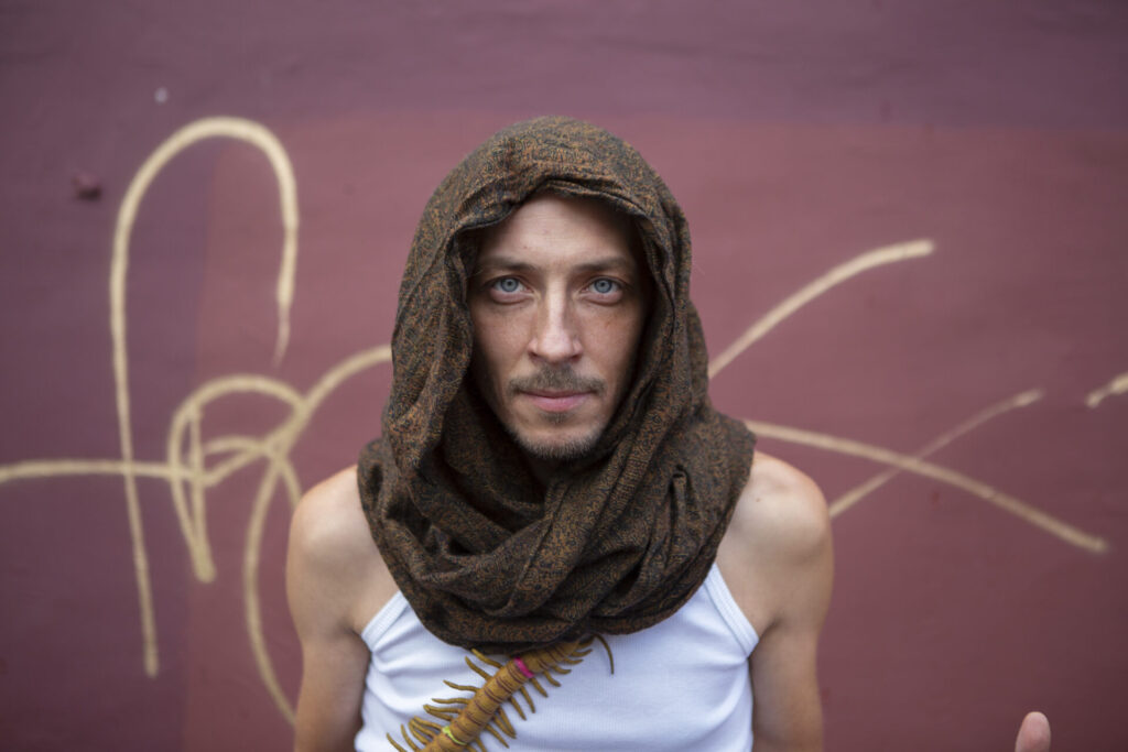 Bazinato (Belarus): Praticante de arte como hipnose e defensor da “ecologia sombria”, cria arte não apenas para os humanos, mas também para os não-humanos, promovendo uma compreensão não antropocêntrica do mundo. Além de elementos da natureza, utiliza como insumos para suas obras os resíduos gerados pelas demais produções artísticas, como plástico, papel, latas e afins.
