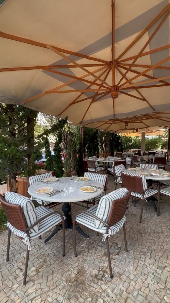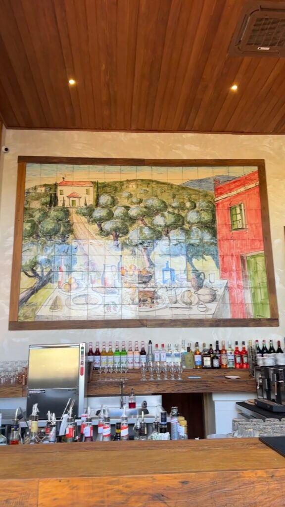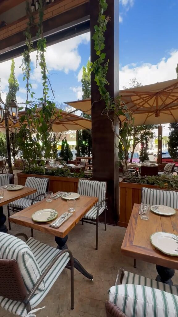 O restaurante é composto por tijolinhos aparentes que remetem à clássica cantina italiana assinado pela arquiteta de São Paulo Amanda Mello com obras de arte espalhadas pelos ambientes e folhagens remetendo ao sul da Itália. Entre as opções para acomodações, o ambiente conta com mesas espalhadas no jardim também.