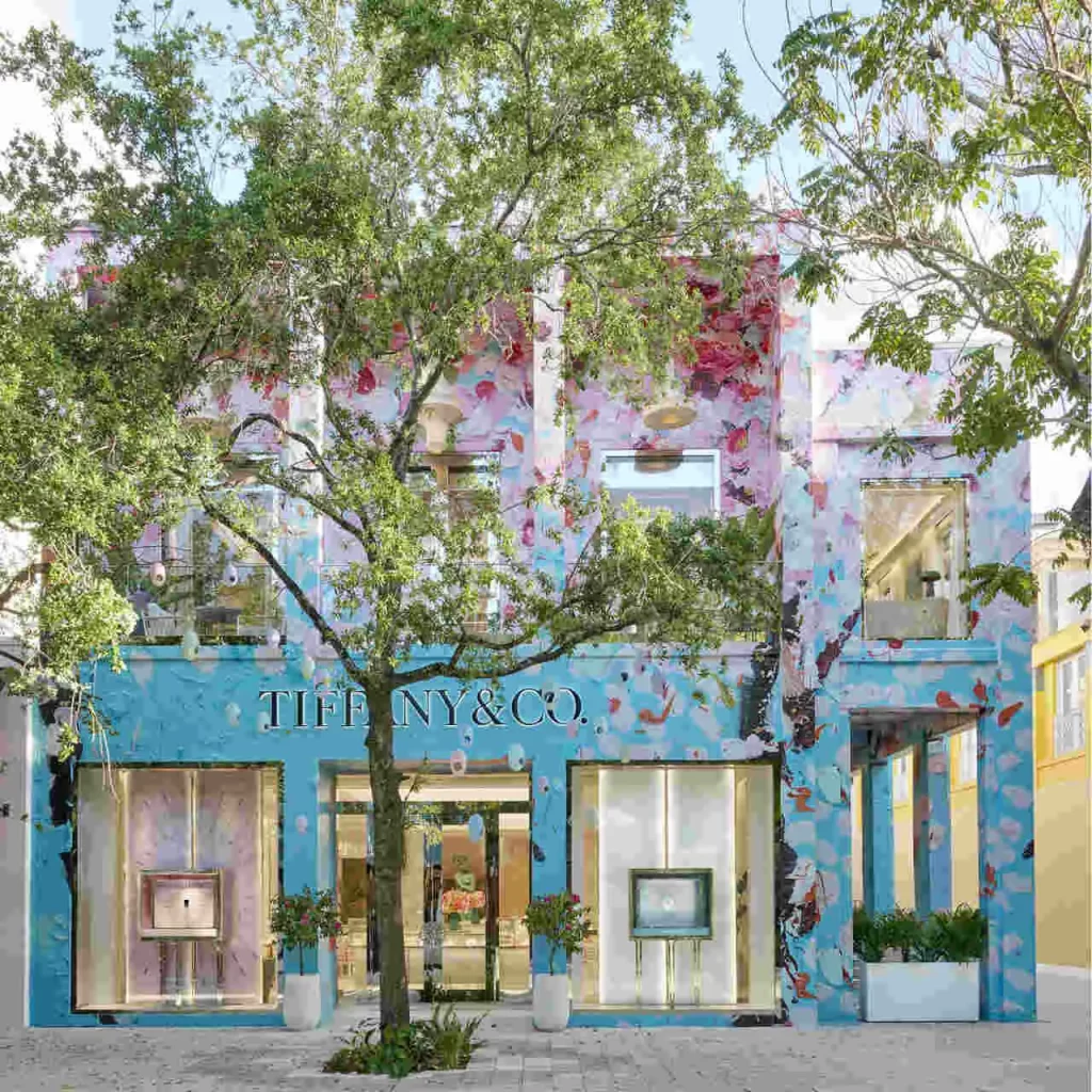 Para comemorar a inauguração, a Tiffany & Co. do Miami Design District apresenta uma fachada por tempo limitado com uma obra de arte em flor produzida pela artista Damien Hirst. A arte atrai os visitantes para o mundo da Tiffany & Co. e reflete a longa história da grife ao combinar arte, excelência criativa e inventividade. A pintura de Hirst apresenta flores densas e cores vivas que vão sobrecarregando os sentidos dos visitantes ao apresentar uma entrada emblemática em um universo repleto de flores.