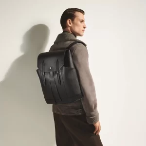 Marcada por um design lúdico de alça dupla, a nova mochila Sartorial está disponível em couro de bezerro preto com relevo. Este formato médio inclui dois bolsos laterais abertos para fácil acesso aos itens essenciais do dia a dia, permitindo uma transição perfeita do trabalho para o lazer. O interior inclui um compartimento acolchoado para um laptop de até 13 polegadas, além de um bolso com zíper para guardar os pertences com segurança, além de dois bolsos abertos para acesso rápido e duas alças para instrumentos de escrita.