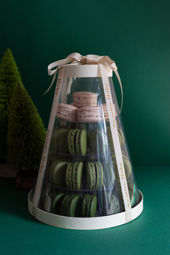 Para aqueles que desejam embelezar a mesa da ceia e presentear, a Caixa Guirlanda (R$185) é uma ótima pedida, a guirlanda de 16 macarons tradicionais e 3 macarons em formato especial de Natal é embalada em caixa cartonada com visor transparente. Outra opção deliciosa é a Torre de Macarons (R$298). A caixa vitrine vem com uma torre de 4 andares com 40 deliciosos macarons tradicionais com sabores à escolha do cliente, entre churros, nutella, baunilha, morango, maracujá e muitos outros.