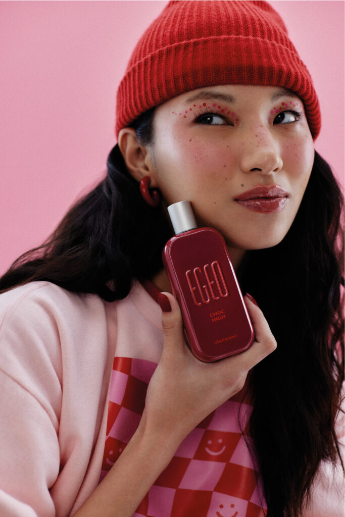 De acordo com Fernanda Marques, diretora da categoria de Perfumaria Feminina do Grupo Boticário, a escolha olfativa do chocolate cremoso combinado ao azedinho do morango e ao extrato de cacau traduz a essência ousada e fun de Egeo. A marca de perfumaria se destaca por inovar os clássicos, como Choc, um dos best sellers, e explorar novas nuances olfativas, agregando conceitos de neurociência em suas criações – sempre conectada ao espírito criativo e irreverente da Geração Z. “O DNA de EGEO nos permite romper padrões e trazer inovações para o mercado, que se conectam diretamente com nosso público. Criamos uma fragrância que incentiva os nossos consumidores a curtirem seus momentos ao máximo, celebrando suas identidades e individualidades de forma genuína. É essa ousadia que reforça a força da marca em buscar e trazer sempre o novo, sem perder a conexão com o que é relevante para nosso público”, comenta.