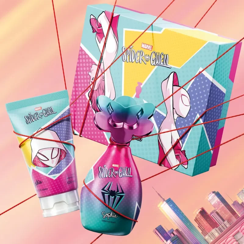 Entre os destaques, estão a Next Colônia Spider-Man, com notas de frutas vermelhas, lavanda e patchouli, e o Gel Capilar Next Spider Fix, que modela os fios com alta fixação e perfume prolongado. Já na linha inspirada em Gwen Stacy, a Sophie Colônia Spider-Gwen traz notas de frutas vermelhas, magnólia e baunilha, além do Jelly Cream Spider-Gwen, loção bifásica hidratante com textura refrescante e perfumação duradoura. As novidades ainda incluem um necessaire dupla face e embalagens exclusivas com ilustrações holográficas, perfeitas para presentear e celebrar um Dia das Crianças cheio de imaginação.