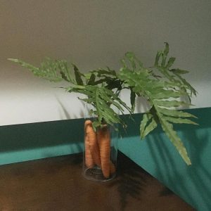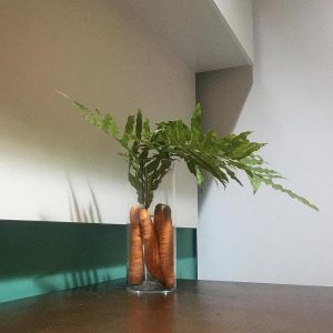 “Estou prestando mais atenção nas coisas. A escassez está obrigando a desenvolver mais ainda o meu lado criador. Nesse momento, não conseguimos parar de pensar. E nessa quaresma, tentei fazer jejum. Jejum de pensamentos negativos. Todas as vezes que pensava negativo, lembrava da Páscoa. Teve uma noite em que não consegui dormir. Esperei a luz do dia e fui dar uma volta no jardim. Fixei o olhar nas plantas. Cada flor, cada folha tinha uma forma, um movimento. O lado lúdico misturado com o sentimento de querer produzir me fez entender a Páscoa estava em mim. Abri a geladeira, vi que tinha 3 cenouras e alguns ovos. Pronto! A ideia de Páscoa virou realidade. Daí surgiu o arranjo com cenouras e os meus coelhinhos”, disse Vicente.