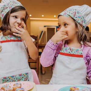 É nesta hora que o verdadeiro mini chef se revela! Com ingredientes deliciosos e com cores e embalagens combinando com a decoração da festa, como confetes e glacês, cada criança enfeita seus mini donuts do jeito que a imaginação quiser. Mais do que divertir, a oficina pretende desenvolver a habilidade manual dos pequenos enquanto eles se deliciam.