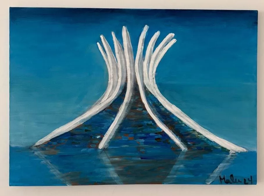 Malu Sig constrói sua produção a partir de técnicas de pintura acrílica para retratar os multicoloridos ipês de Brasília e os pores do sol que marcam a paisagem da capital. Criada em Brasília, incorpora ao seu trabalho releituras das formas de Oscar Niemeyer e dos padrões de Athos Bulcão, referências que atravessam sua vida e seu olhar estético. Após um AVC em 2020, durante sua internação na capital, a artista reencontrou na arte um caminho de reabilitação, aprofundando-se na pintura acrílica, nos efeitos aguados e em mosaicos, retomando o talento já experimentado nos anos 1990 com a técnica em vidro “Fusing”.
