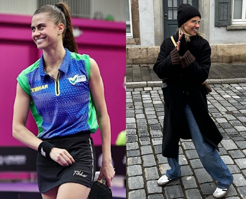 Bruna Takahashi, uma figura proeminente no tênis de mesa, impressiona tanto por sua habilidade quanto pelo seu apurado senso de moda. Morando na Alemanha, onde treina e compete, Bruna mescla com maestria tendências europeias ao estilo brasileiro, mostrando versatilidade e bom gosto ao adaptar-se às diferentes estações. Seja nos meses frios com elegantes casacos, ou nas estações quentes com roupas leves e descontraídas, Bruna encanta com seu visual moderno e autêntico.