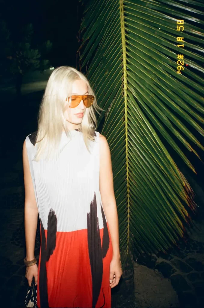 Para as estampas, a visão de que a moda pode ser uma plataforma de comunicação e storytelling trazendo elementos de estilo que contam histórias. Na paleta de cores, a construção de um dia perfeito de verão: os tons neutros se associam ao azul do céu e do mar, o verde das vegetações ganha calor e se apresenta de forma quente. Amarelos e laranjas remetem aos dias ensolarados que atingem seu ápice, destacando a vibração e sensualidade do vermelho pitanga.