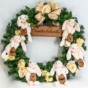 Engana-se quem pensa que as guirlandas são somente decoração de Natal. Esse objeto decorativo combina muito bem com a Páscoa, e pode ser uma representação da ressurreição e do renascimento celebrados no feriado. “As guirlandas podem ser decoradas com trigo, com coelhinhos, com imagens que representem a data”, acrescenta Christine.