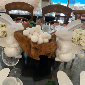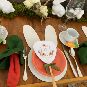 Para a decoração da mesa, é possível inovar com os guardanapos. Fabiani mostrou que é possível dobrar os guardanapos de pano de forma que eles lembrem um coelhinho. Outra maneira de decorar é utilizar porta-guardanapos. Além disso, os sousplats podem fazer uma grande diferença na decoração: podem ser usadas cores e estampas que remetem à Páscoa, ou até fazer em forma de coelhinho!